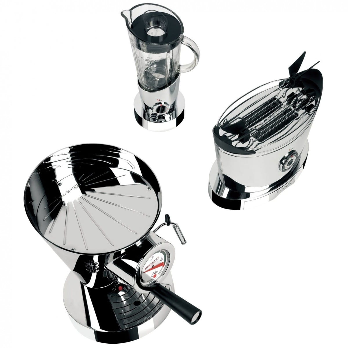 Ekspres do kawy włoskiej marki Bugatti został wykonany z aluminium gdzie podstaw dodatkowo została chromowana. Nowoczesne i funkcjonalne urządzenie pozwoli w łatwy i intuicyjny sposób przygotować w domu pyszną pachnąca kawę. W obudowie umieszczone są trzy przyciski opatrzone obrazkiem, które pozwolą szybko i łatwo zaparzyć napojów. Kolba posiada trzy wymienne sitka co pozwala zaparzyć kawę w saszetce bąź jedną lub dwie filiżanki jednorazowo. Ciśnienie ekspresu to 15 barów co pokazuje na eleganckim zegarze z przodu. Połączenie takiego ciśnienia wraz ze stałą temperaturą parzenia 95 stopni C pozwala uzyskać najlepszą kawę w czasie krótszym niż minuta. Dodatkowo urządzenie zostało wyposażone w dyszę do spieniania mleka oraz nalewania gorącej wody. Dzięki stalowej płycie umieszczonej w górnej częsci ekspresu istnieje mozliwość podgrzewania filiżanek przed przyrządzeniem kawy.