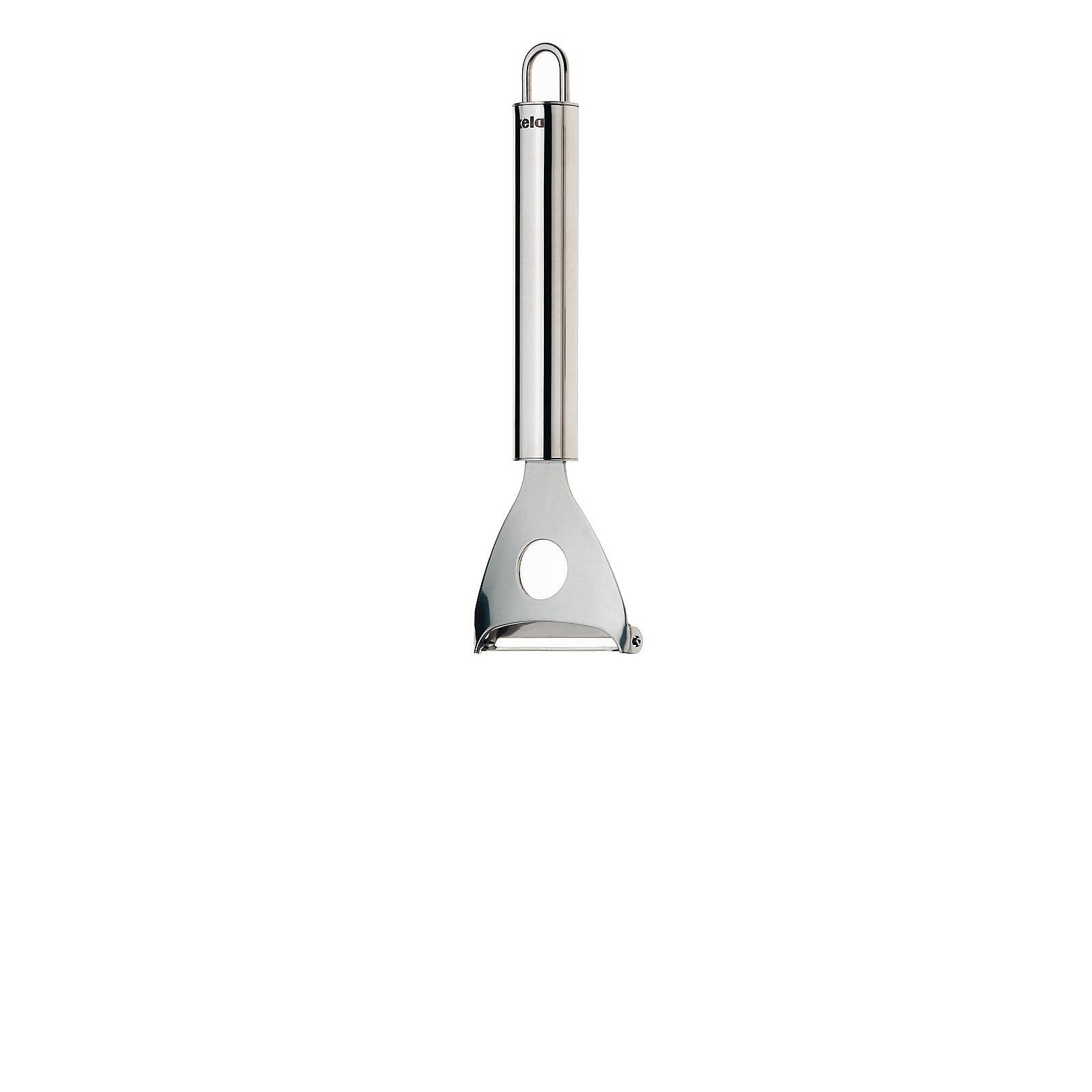 Ergonomiczny kształt dobrze leży w dłoni i zapewnia komfort użytkowania. Dodatkowe oczko umożliwia łatwe usuwanie niechcianych fragmentów z warzyw. Obieraczka jest trwała, odporna na korozję i łatwa w czyszczeniu.
