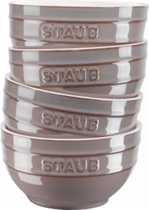 Zestaw misek Staub Serving wykonany z wysokiej jakości emaliowanej ceramiki wykańczanej ręcznie. Sprawdzą się do podawania sosów, dipów czy po prostu mniejszej ilości dań. W celu zaoszczędzenia miejsca istnieje mozliwość stopniowania. Można uzywać w mikofalówce jak również myć w zmywarce.