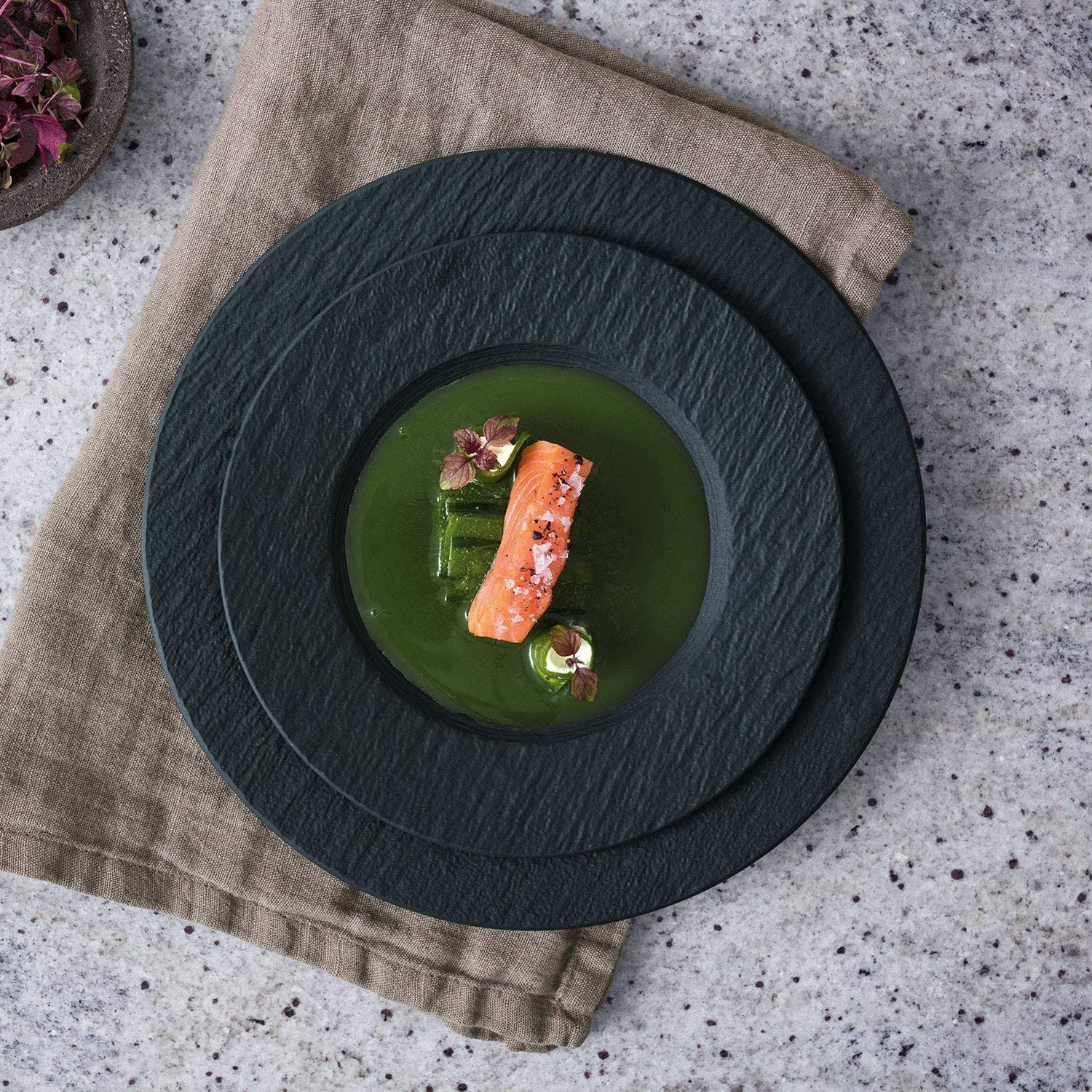 Wyjątkowa kolekcja Manufacture Rock wykonana z porcelany premium o unikalnym wyglądzie łupka wyjątkowym w dotyku. Kolekcja zawdzięcza swój matowy wygląd porcelanie z niewielką ilością glazury. Naczynia są odporne na zużycie, odpryski i można je układać jedno na drugim. Jest stworzona specjalnie dla osób ceniących sobie niepowtarzalny wygląd, elegancje oraz wysoką jakość.