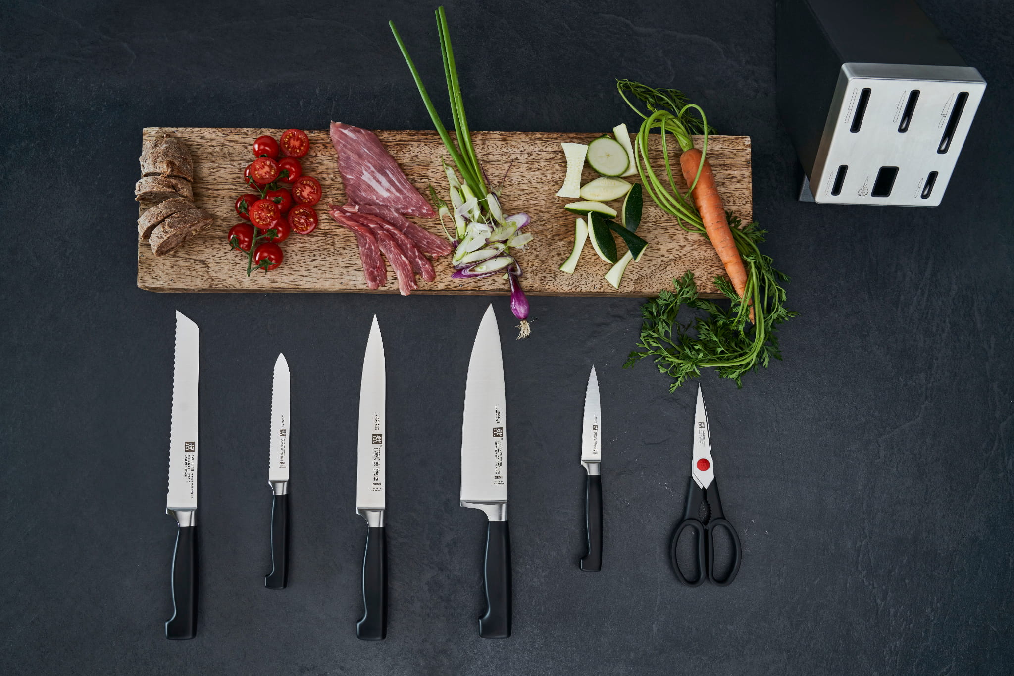 Do produkcji noży użyto specjalnej stali nierdzewnej z optymalną ilością chromu i węgla, opatentowanej przez markę ZWILLING J. A. Henckels. Twardość noża to 57 HRC w skali Rockwella charakteryzuje się długotrwałą żywotnością, odpornością na korozję i łatwością w ostrzeniu. Gwarancją tych właściwości jest specjalna metoda utwardzania FRIODUR® - rozgrzaną stal do temperatury ponad 1000 stopni hartuje się w -70 stopniach, czynność tą powtarzając dwukrotnie. Ostrze noża powstaje dzięki metodzie wykuwania z jednego kawałka stali zapewniając jeszcze większą twardość i odporność na stępienie.