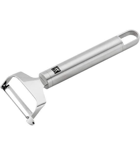 Przygotuj się na warzywa! Każdy, kto musi obierać ziemniaki, ogórki, szparagi lub owoce, powinien skorzystać z obieraczki obrotowej ZWILLING Pro. Dlaczego? Ponieważ ruchome podwójne ostrze sprawia, że jest to szczególnie łatwe i tnie w obie strony. Wszelkie pędy lub małe niedoskonałości możesz szybko usunąć za pomocą ostrza umieszczonego na czubku obieraczki. To, że niezbędny mały gadżet kuchenny wygodnie leży w dłoni i pięknie wygląda, to zasługa doświadczonego duetu projektantów Matteo Thun i Antonio Rodriguez. Obrotową obieraczkę można również wygodnie umieścić w zmywarce, ponieważ jest wytrzymała i odporna na korozję.