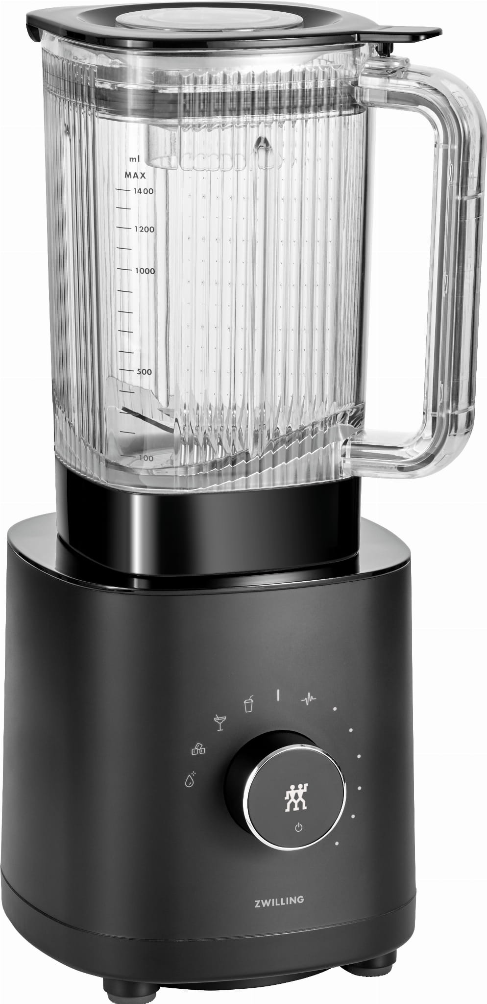 Blender niemieckiej marki ZWILLING z serii ENFINIGY. Wyposażony został w ostrza krzyżowe o charakterystycznie ząbkowanych krawędziach wykonanym w Solingen. Pozwala to na rozdrabnianie nawet najtwardszych składników zachowując swoją użyteczność przez długie lata. Połączenie specjalnie zaprojektowanych ostrzy wraz z silnikiem o mocy 1200 Watt silnikiem daje niesamowite efekty pracy z tym urządzeniem. Wyposażony w pojemnik o optymalnym kształcie, pojemności 1.4l , który wykonany jest z Tritanu wolnego od BPA. Zastosowany pojemnik odporny jest na niskie jak i wysokie temperatury oraz łatwy w utrzymaniu czystości. Dla zapewnienia bezpieczeństwa użytkowania specjalny program pozwala na użytkowanie tylko i wyłącznie z pokrywką co daje nam pewność i bezpieczeństwo. Po przez funkcjonalne pokrętło mamy możliwość wyboru pięciu programów (pulse, smoothie, koktajl, kruszenie lodu, oraz czyszczenie) oraz 12 poziomów prędkości. Koktajle, dipy, sosy i wiele innych uzyskają dzięki temu idealną konsystencję. Dodatkowo blender został wyposażony w wbudowany wyświetlacz. Do urządzenia zastały dołączone wysokiej jakości miarka oraz wyciskarka ze zintegrowanym termometrem