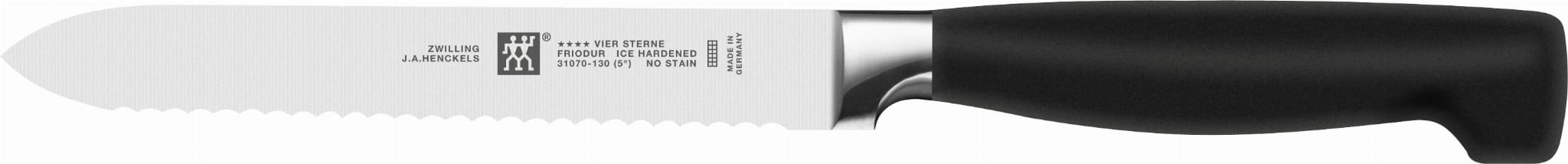 Seria noży Vier Sterne powstała ponad 30 lat tem rewolucjonując standardy dla wysokiej jakości noży dla szefów kuchni za pomocą bezszwowego, całkowicie jednolitego uchwytu. Klasyczne arcydzieło bezpieczeństwa, ergonomii i komfortu to wciąż najlepiej sprzedająca się seria noży na całym świecie. Wykonana została z bardzo trwałego tworzywa odpornego na przebarwienia, działania kwasów spożywczych czy uderzenia. Perfekcyjnie dopracowane detale zapobiegają osadzaniu się brudu, spełniając dzięki temu normy higieniczne.