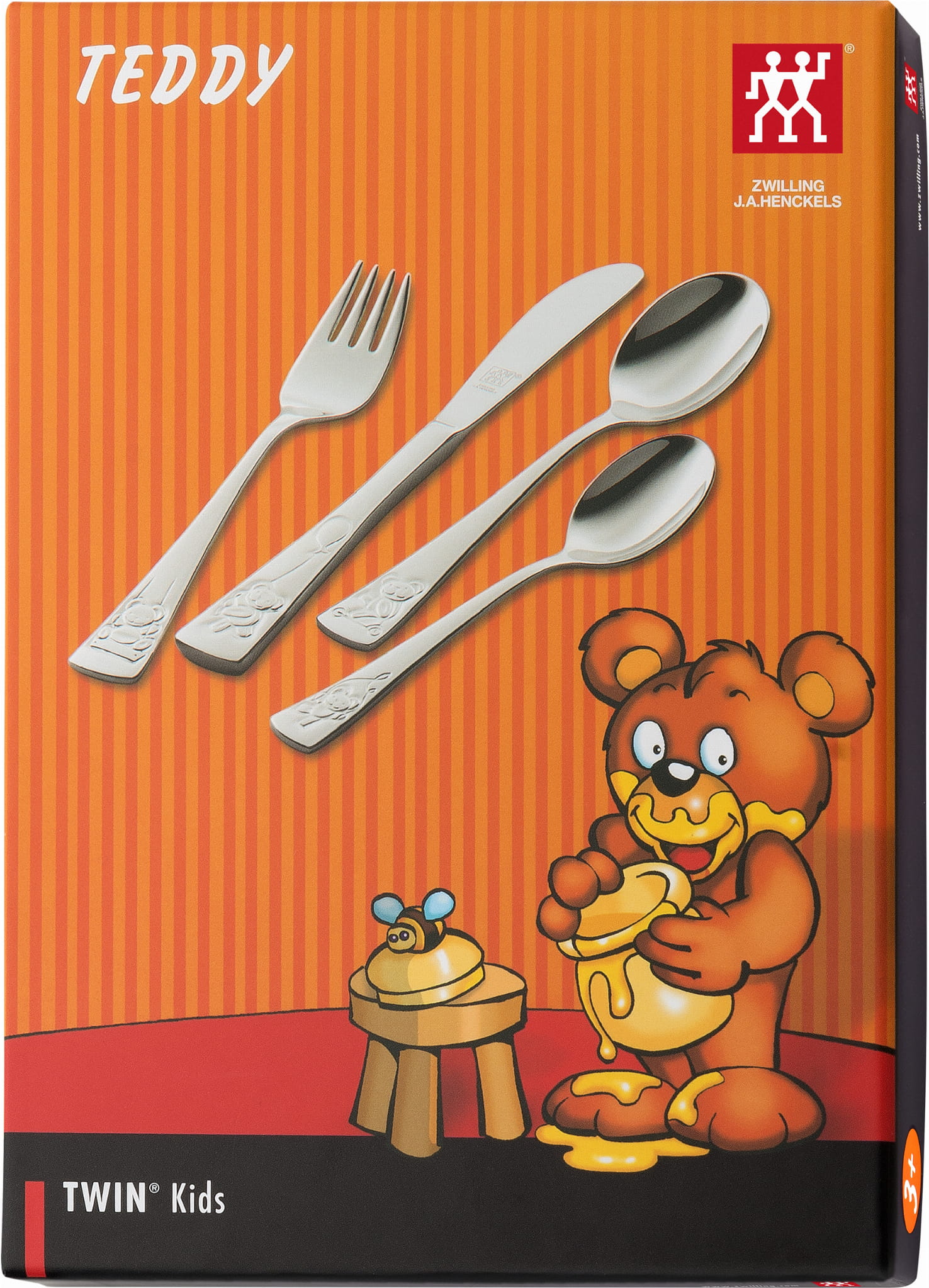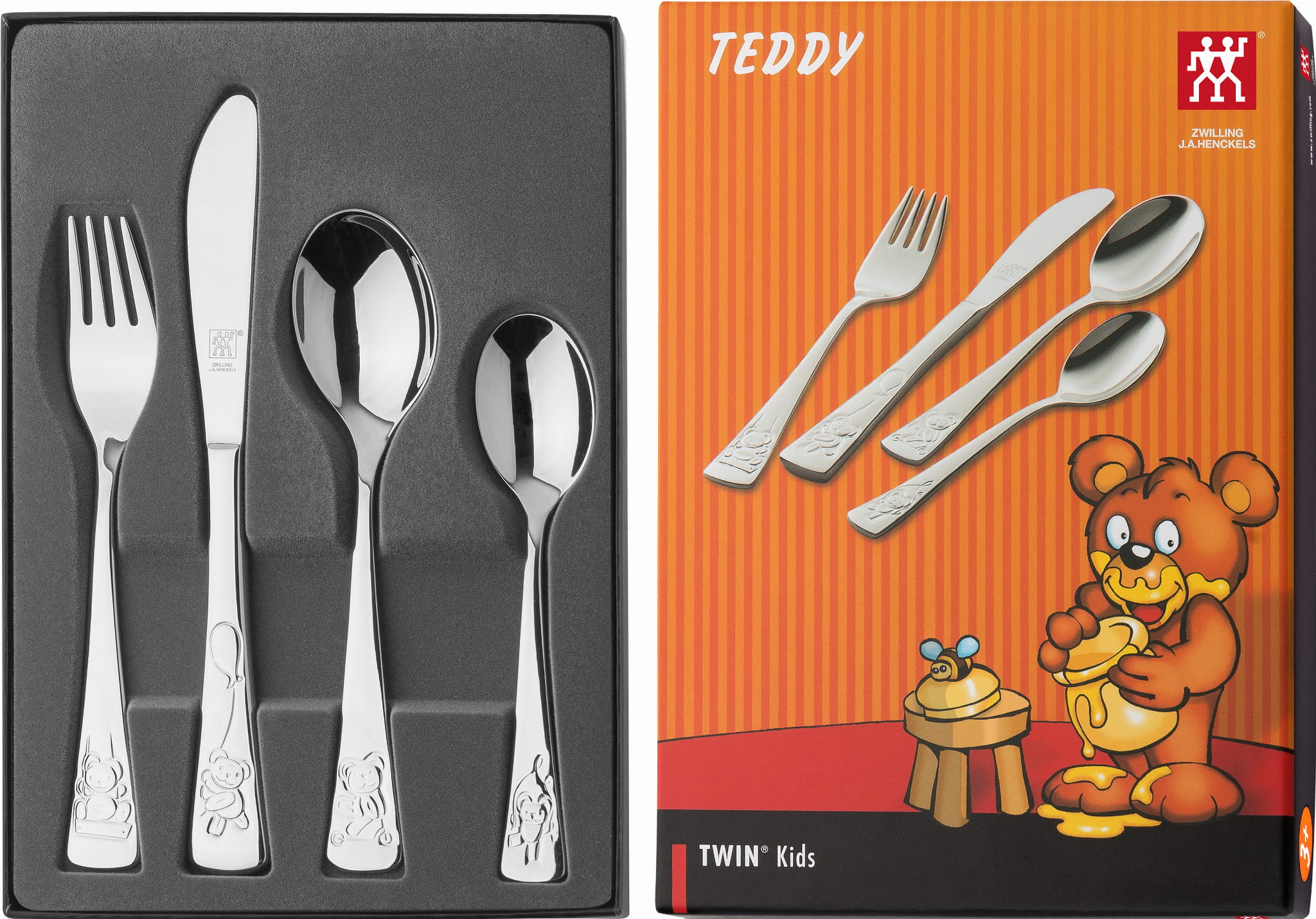 Zestaw sztućców dla dzieci marki Zwilling Kids miś wykonane zostały z wysokiej jakości stali nierdzewnej 18/10. W skład zestawy wchodzą: nóż, widelec, łyżka oraz łyżeczka. Zestaw idealny jest dla dzieci powyżej 3 roku życia. Nadają się do mycia w zmywarce. Całość zapakowana jest ozdobne pudełko idealnie sprawdzi się na prezent.